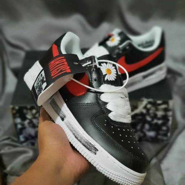 Jual beli online aman dan nyaman hanya di Tokopedia. Sepatu Nike Air Force 1 Para-Noise terlihat begitu menarik berkat sentuhan seni dari artis Korea ternama G-Dragon BIGBANG. Jual sepatu nike air force one 1 x peaceminusone g dragon - Hitam Merah 43 dengan harga Rp600000 dari toko online Kang Kabayan Jakarta Selatan.